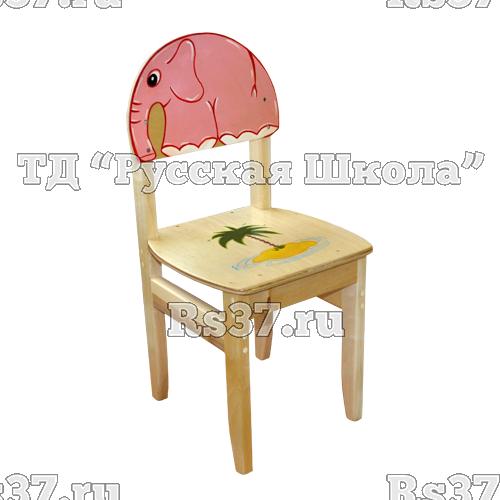 Каркас стула собран из березовых брусков. Ножки прямоугольные в сечении. Сиденье и спинка выполнены из фанеры толщиной 7-8 мм, к каркасу крепятся на саморезы. Рисунки ручной работы.