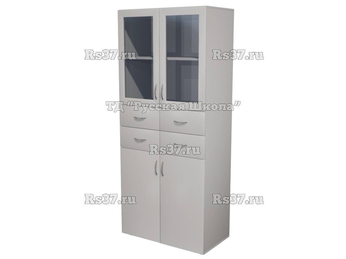Шкаф БАЗИС 25M109 широкий закрытый со стеклом и 4 ящиками выполнен из ЛДСП 16 мм.