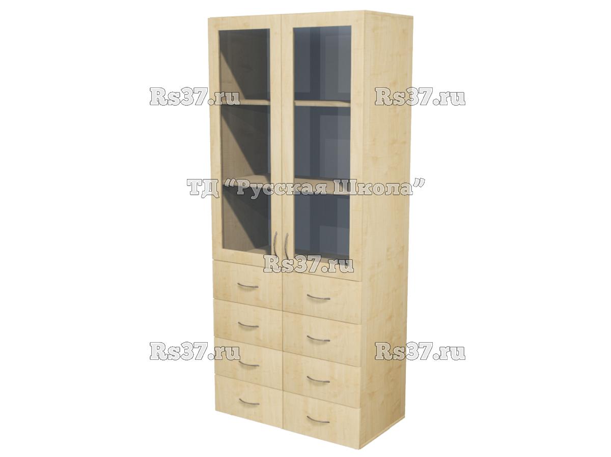 Шкаф БАЗИС 25M114 широкий закрытый 8 ящиков со стеклом выполнен из ЛДСП 16 мм.