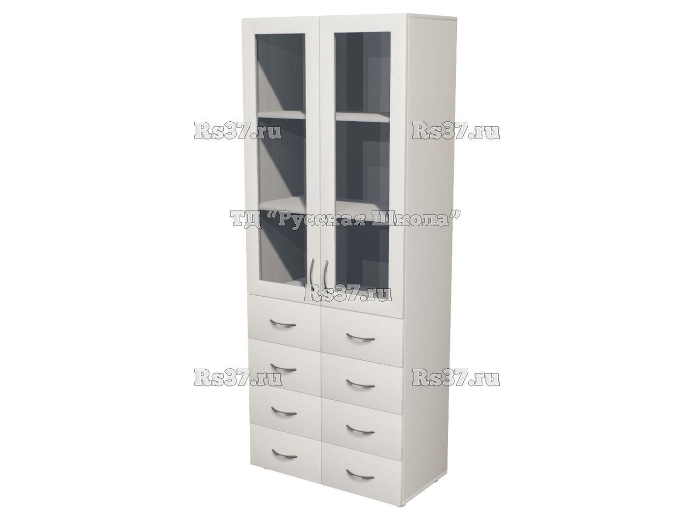 Шкаф ЭКО 25M14 широкий закрытый 8 ящиков со стеклом выполнен из ЛДСП 16 мм.