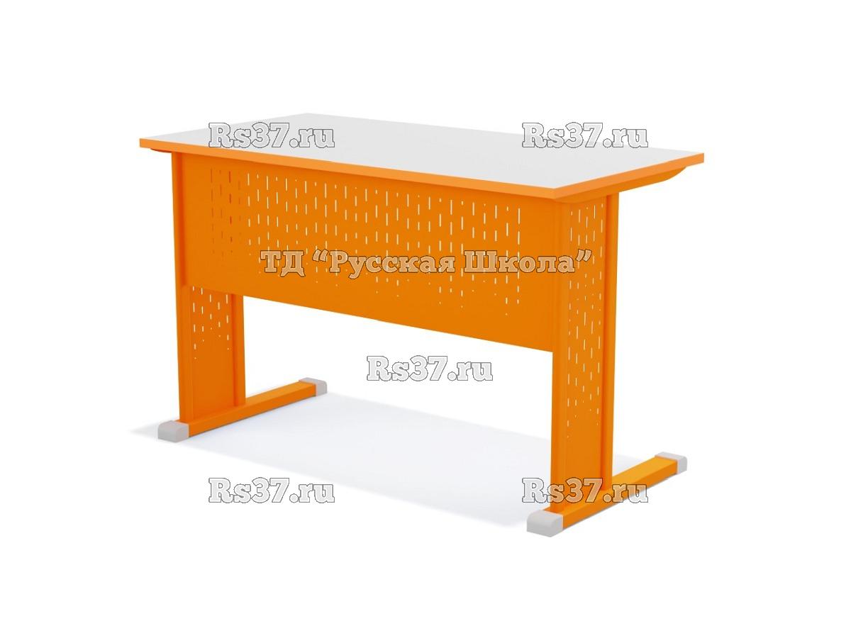 Стол учителя на металлокаркасе плоскоовальной трубы 40х20 и 60х30 с перфорированным экраном и вставками (тип перфорации «Дождик»)