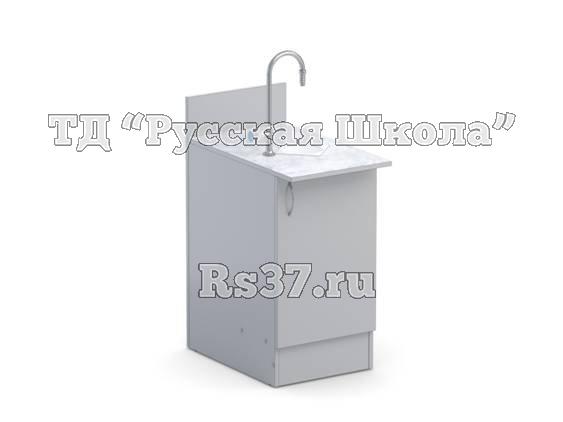 Тумба оборудована водоразборной колонкой и сливной раковиной.