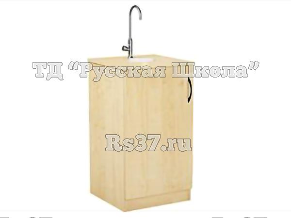 Тумба оснащена водоразборной колонкой и раковиной.